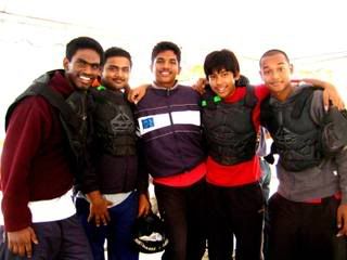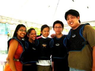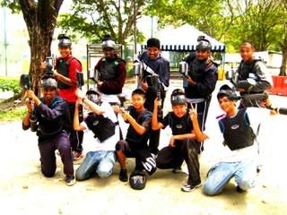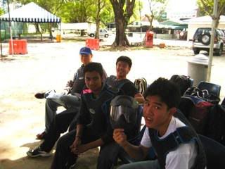 At first the boys were all macho about the body armour, insisting that it wouldn't be fun if they played with it. After the marshall fired some test shots, that machoness seemed to have disappeared as two teams scrambbled to rent them. Now that was quite funny.